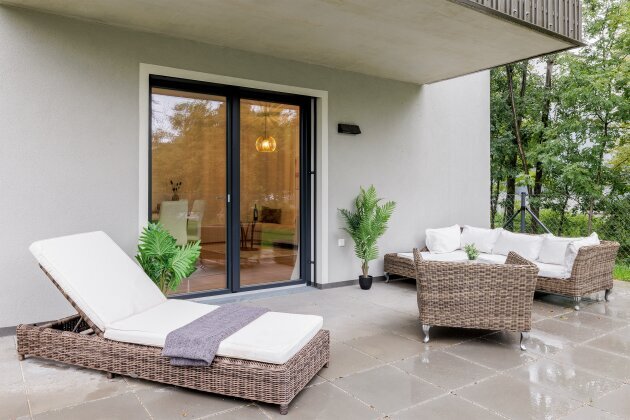 - alle Wohnungen mit Freifläche in Form von Terrasse und Eigengarten oder Balkon