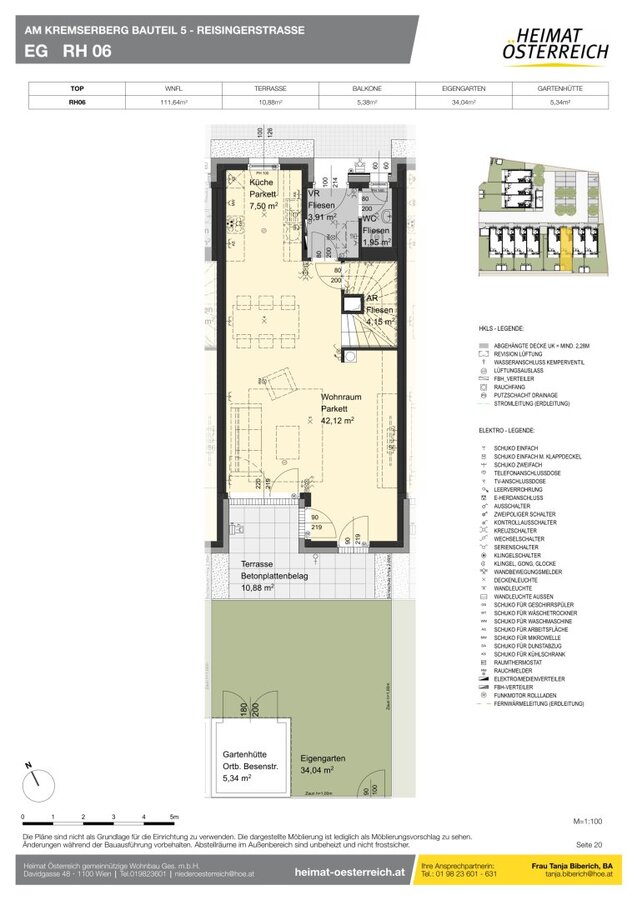 Für angenehme Wärme sorgt die Fußbodenheizung, die über Fernwärme betrieben wird, während die kontrollierte Wohnraumlüftung stets für frische Luft sorgt. Mit einem HWB von 45,9 kWh/m² (Klasse B) und einem fGEE von 0,69 (A+) ist das Haus energieeffizient und nachhaltig. Zwei Parkplätze bieten genügend Stellfläche.