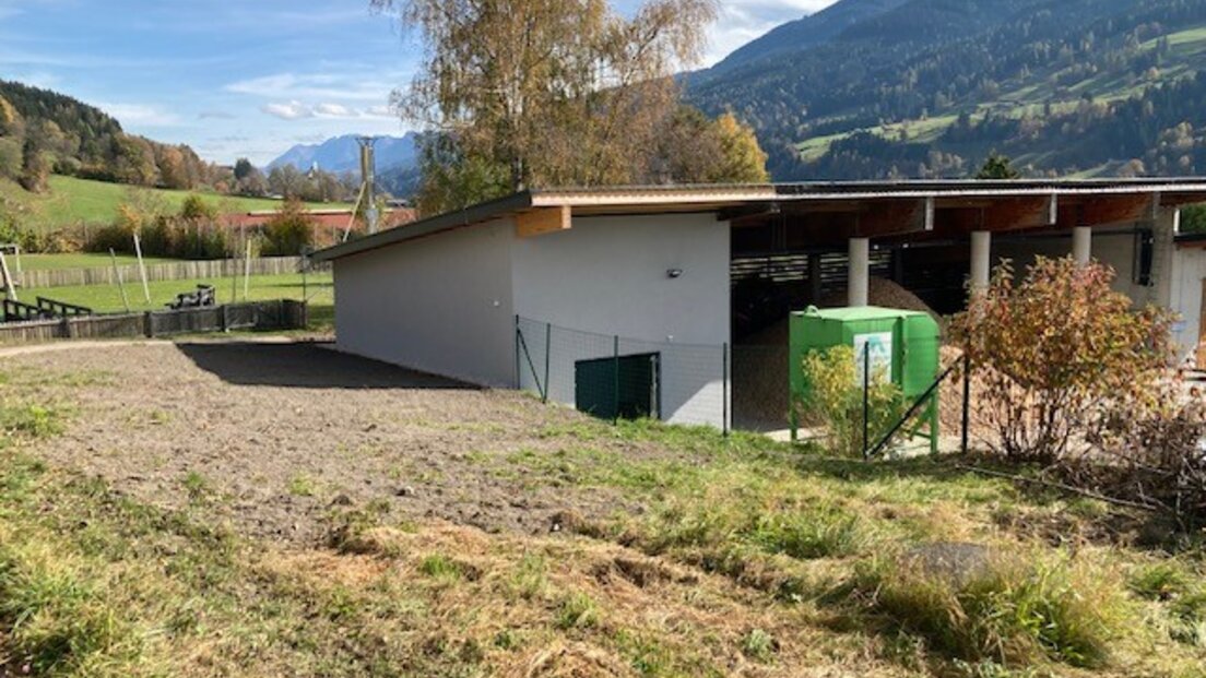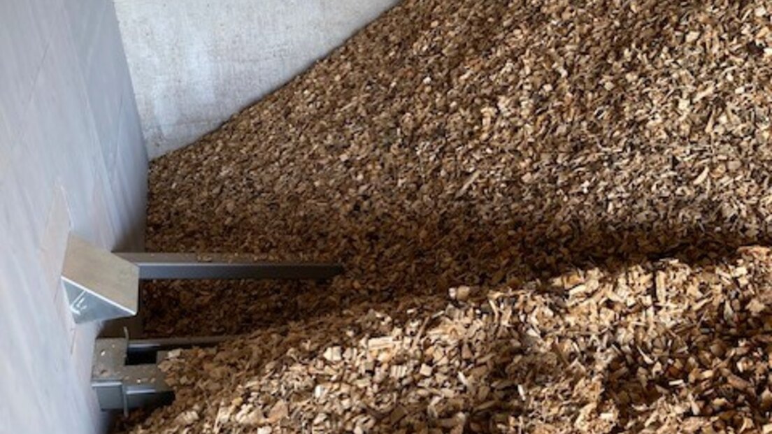 Dieser dient zur Überbrückung von Spitzenzeiten in den Wintermonaten sowie als Ausfallsicherung und Überbrückung während der Wartungsarbeiten beim großen Kessel. Die Entnahme der Hackschnitzel erfolgt direkt über die bereits bestehende, überdachte Lagerfläche mittels Rührwerk.