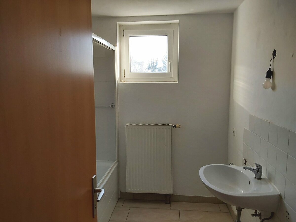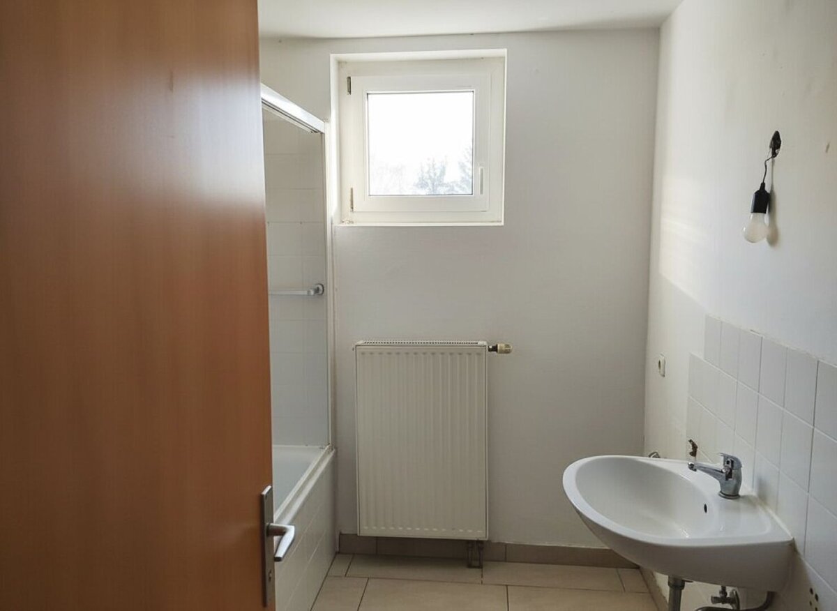 Badezimmer und WC sind getrennt und modern verfliest. Das Badezimmer verfügt über eine Badewanne, ein Handwachbecken, einen Waschmaschinenanschluss und ein Fenster.