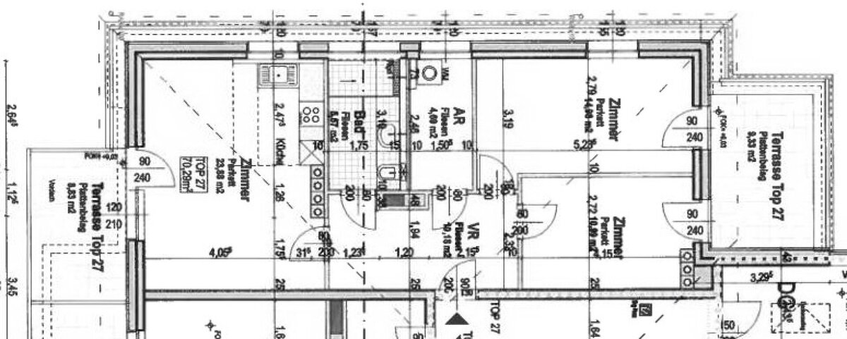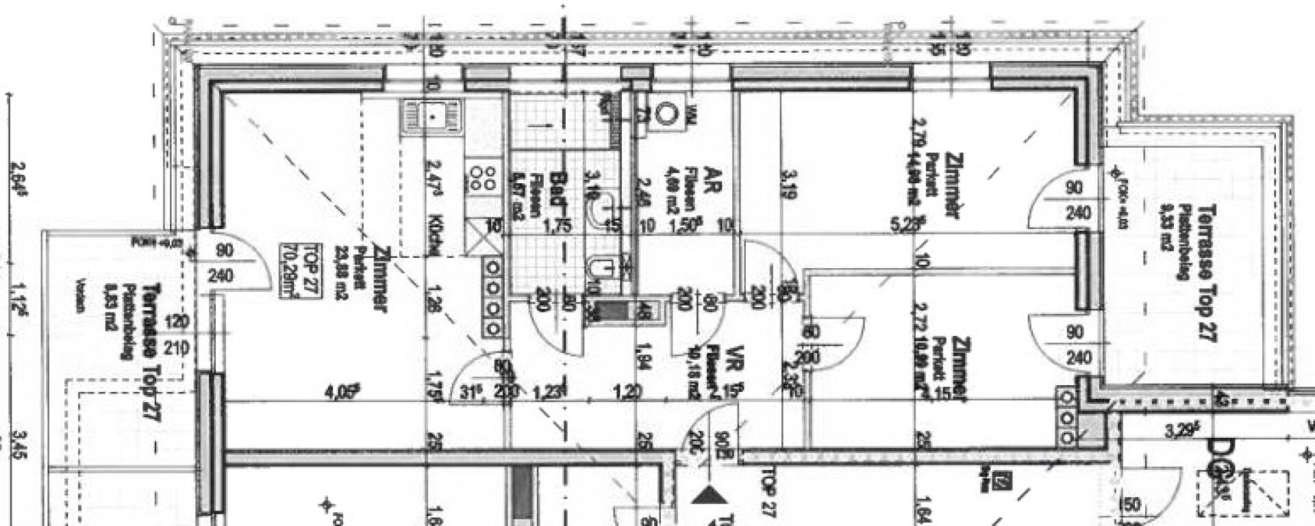 Diese gemütliche 3-Zimmer-Wohnung im 2. Obergeschoss bietet auf ca. 70,29 m² alles, was Sie für ein angenehmes und entspanntes Wohnen brauchen. Die großzügige Wohnküche führt direkt auf die einladende Terrasse von ca. 9 m², ideal, um die Ruhe zu genießen und den Alltag hinter sich zu lassen. Die beiden Schlafzimmer sind vom Vorraum aus erreichbar und bieten Zugang zur zweiten Terrasse.