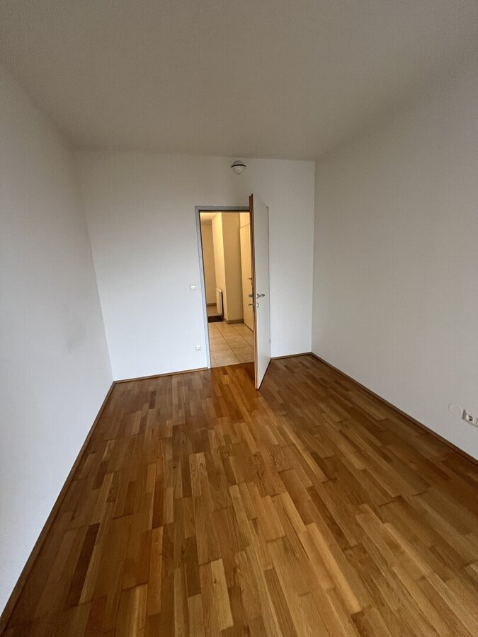 Das moderne, verflieste Badezimmer ist mit einer praktischen Dusche, einem Handwaschbecken und einem WC ausgestattet. Ein zusätzlicher Abstellraum im Vorzimmer sorgt für mehr Stauraum. Die Wohnräume sind mit hochwertigem Parkettboden versehen, der für eine warme Atmosphäre sorgt.