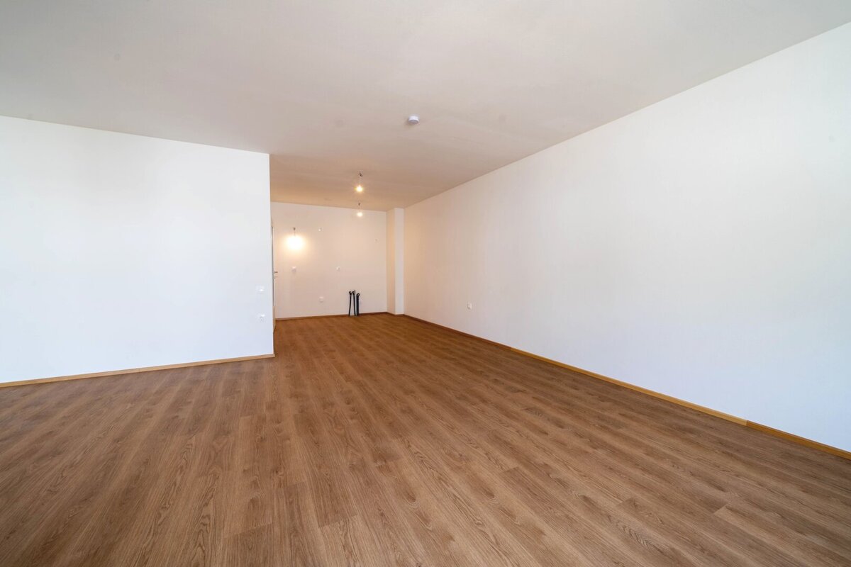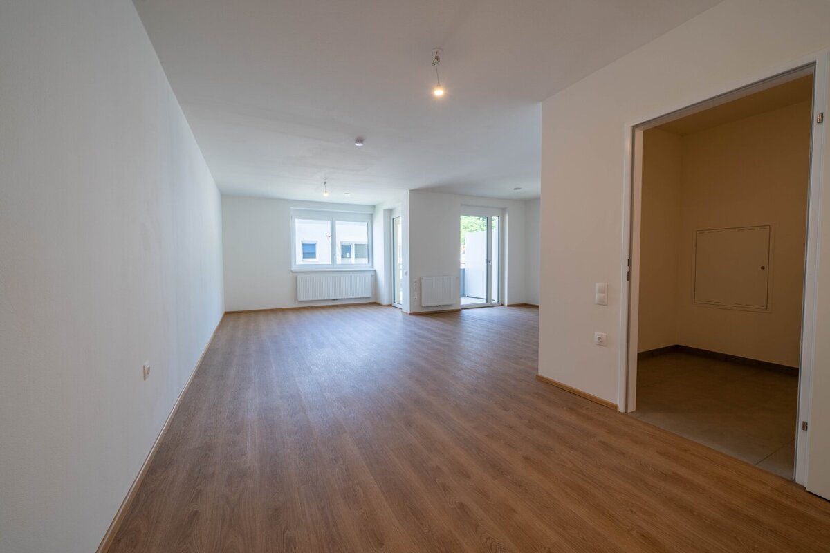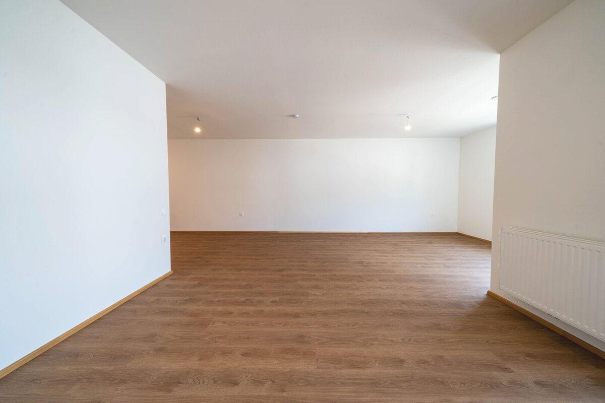 Hochwertige Vinylböden in den Wohnräumen, die Nassräume sind modern verfliest.