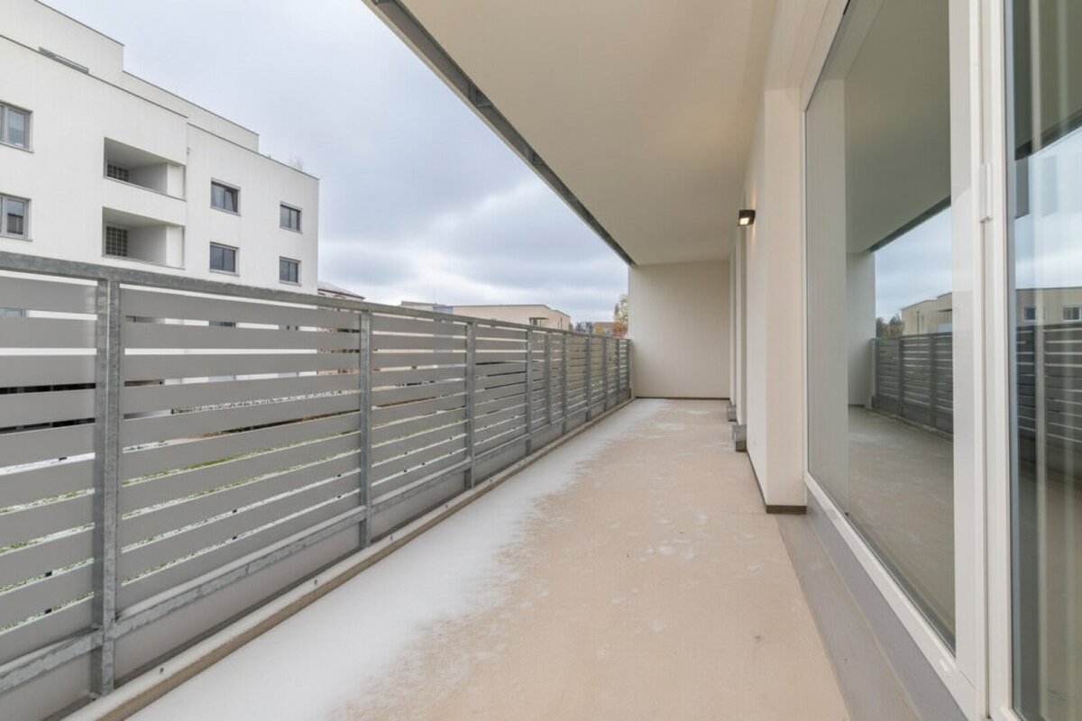 Ein besonderes Highlight dieser Wohnung ist auf jeden Fall der große Balkon, welcher vom Wohnzimmer und den beiden Zimmern betreten werden kann. Hier können Sie herrlich frische Luft tanken und entspannen.