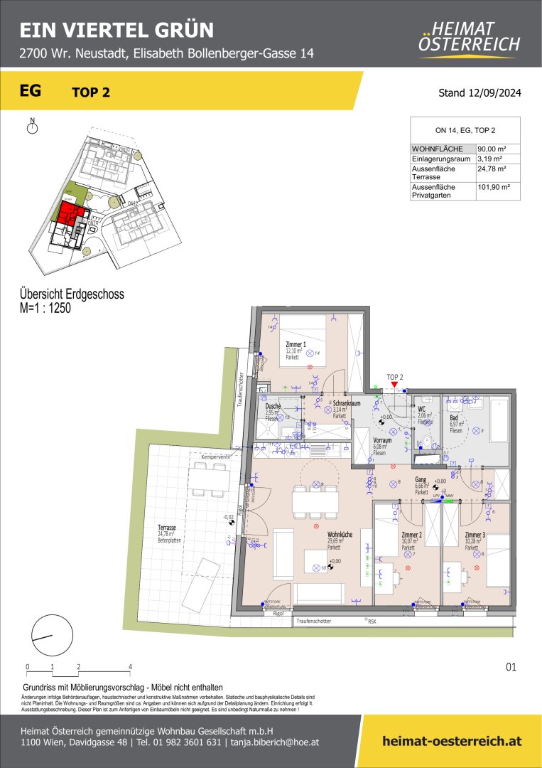 Der offene Wohn-Essbereich bietet viel Platz für gemeinsames Leben und Kochen und führt direkt auf die Terrasse sowie in den Eigengarten - ideal zum Entspannen, Spielen oder Gärtnern. Die Wohnung verfügt über drei separat begehbare Schlafzimmer und zwei voll ausgestattete Badezimmer: eines mit Dusche, das andere mit Badewanne - perfekt für Familien oder Paare mit unterschiedlichen Bedürfnissen.