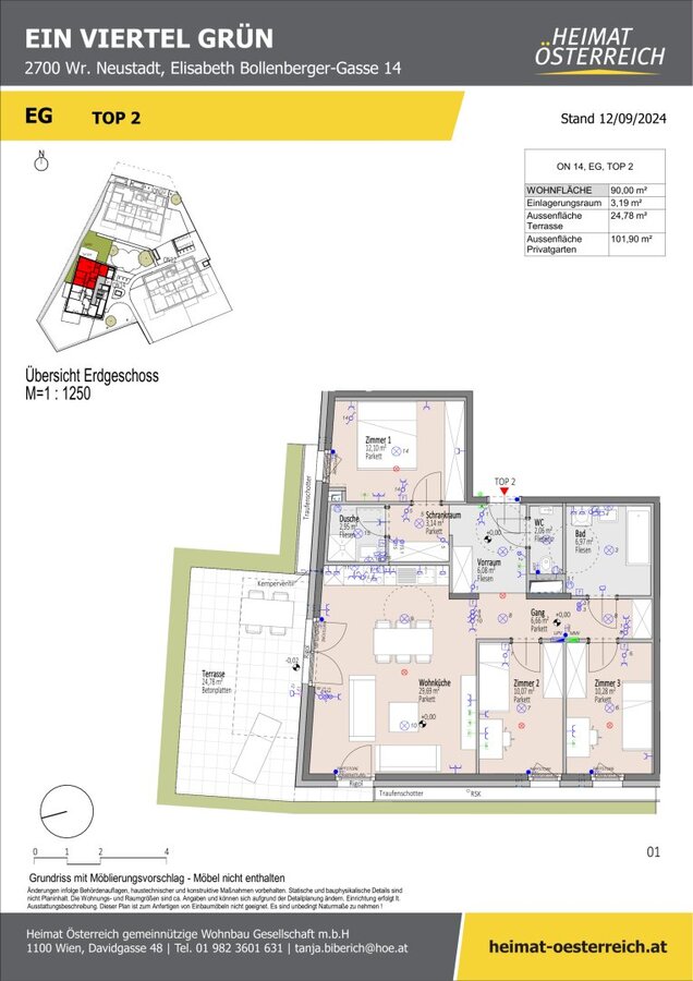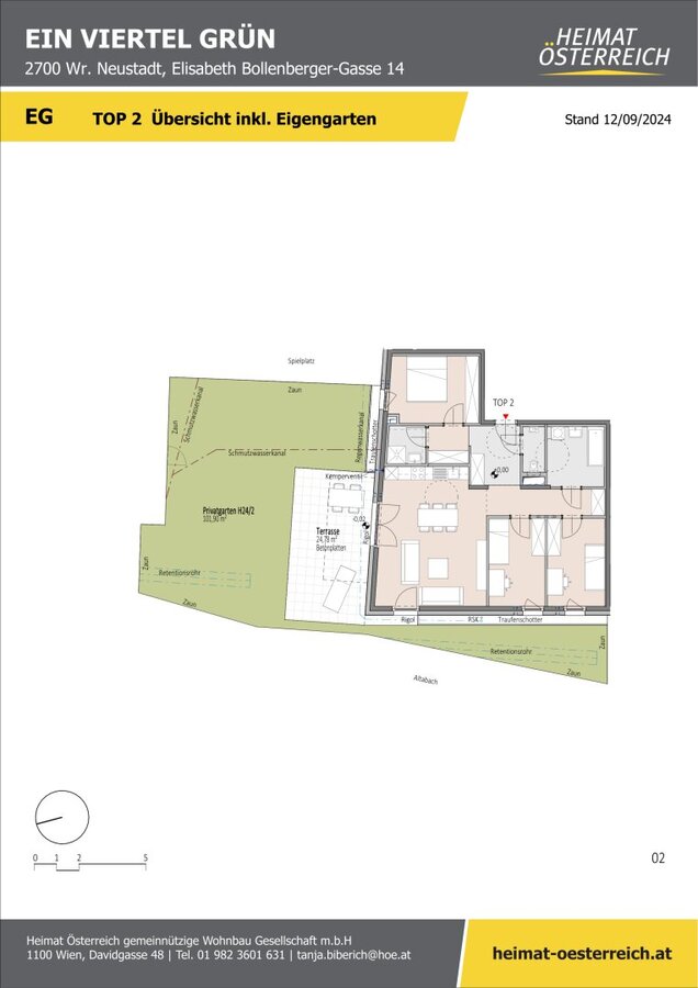 - alle Wohnungen mit Freifläche in Form von Terrasse und Eigengarten oder Balkon