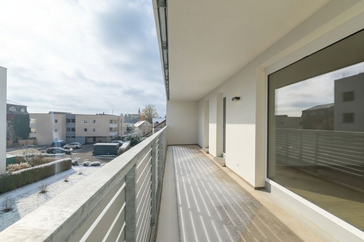 Ein besonderes Highlight dieser Wohnung ist auf jeden Fall der große Balkon, welcher vom Wohnzimmer und den beiden Zimmern betreten werden kann. Hier können Sie herrlich frische Luft tanken und entspannen.