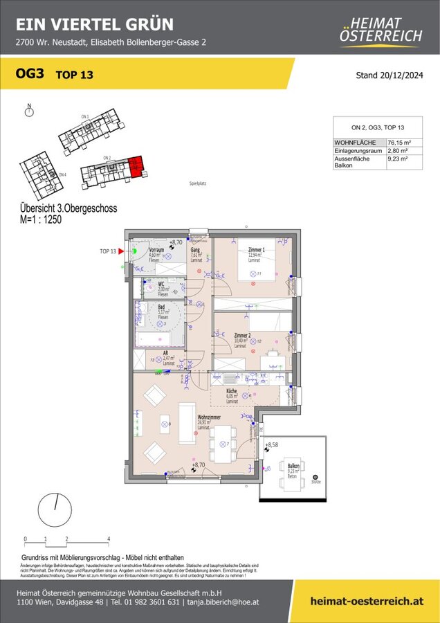 - HWB Wert ca. 29,4 kwh/m²a, fGEE ca. 0,56