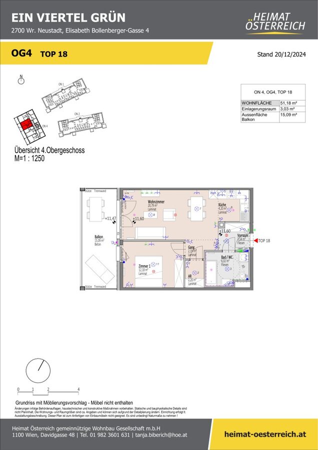 ERSTBEZUG "ein viertel grün" in Wr. Neustadt - 2 Zimmerwohnung mit Balkon im letzten Geschoss - inkl. Tiefgaragenstellplatz - provisionsfrei