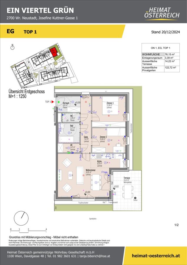 ERSTBEZUG "ein viertel grün" in Wr. Neustadt - bezaubernde 3 Zimmergartenwohnung - inkl. Tiefgaragenstellplatz in bester Lage - provisionsfrei