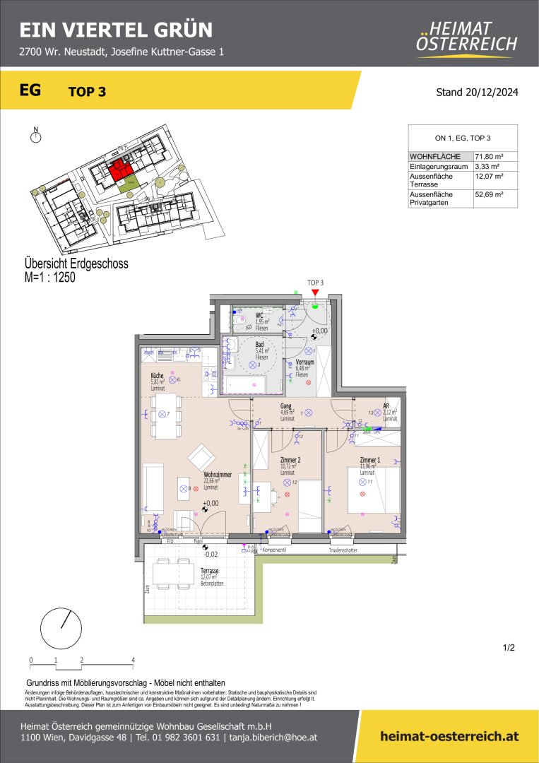 - alle Wohnungen mit Freifläche in Form von Terrasse und Eigengarten oder Balkon