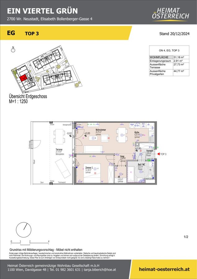 - alle Wohnungen mit Freifläche in Form von Terrasse und Eigengarten oder Balkon