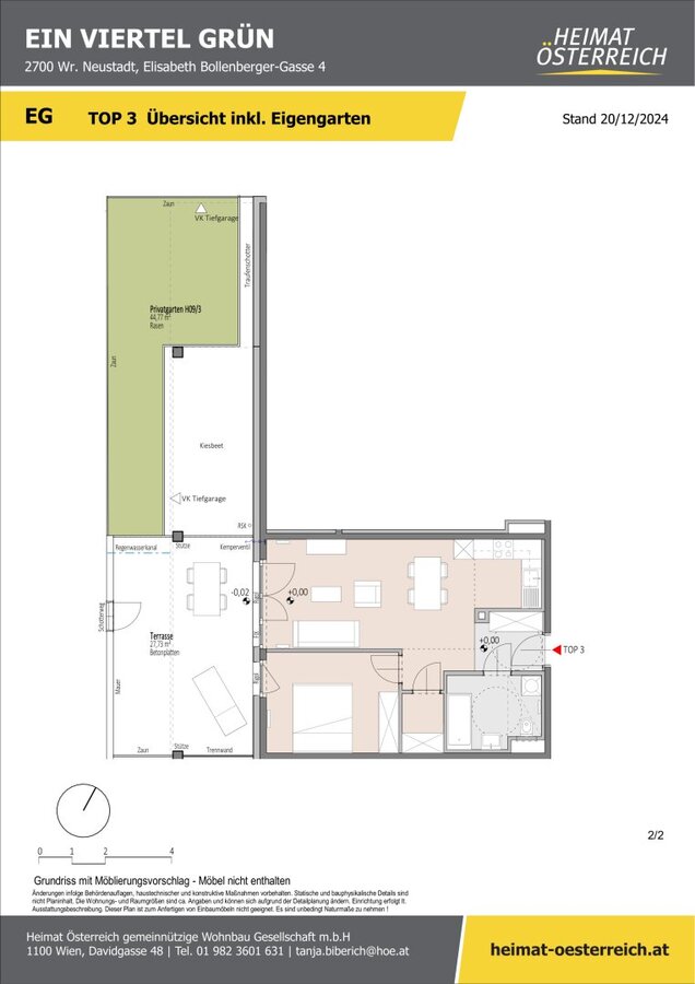 ERSTBEZUG "ein viertel grün" in Wr. Neustadt - herrliche 2 Zimmer Gartenwohnung - inkl. Tiefgaragenstellplatz in bester Lage - provisionsfrei