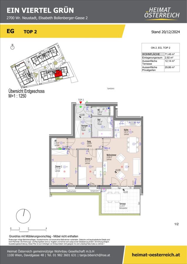 Diese charmante Wohnung im Erdgeschoss wird Sie auf Anhieb begeistern. Mit einer Fläche von 71,48 m² bietet sie genügend Platz für individuelle Gestaltung und persönliche Entfaltung. Die Wohnung ist ein Erstbezug und somit perfekt für all jene, die frischen Wind in ihr Leben bringen möchten.