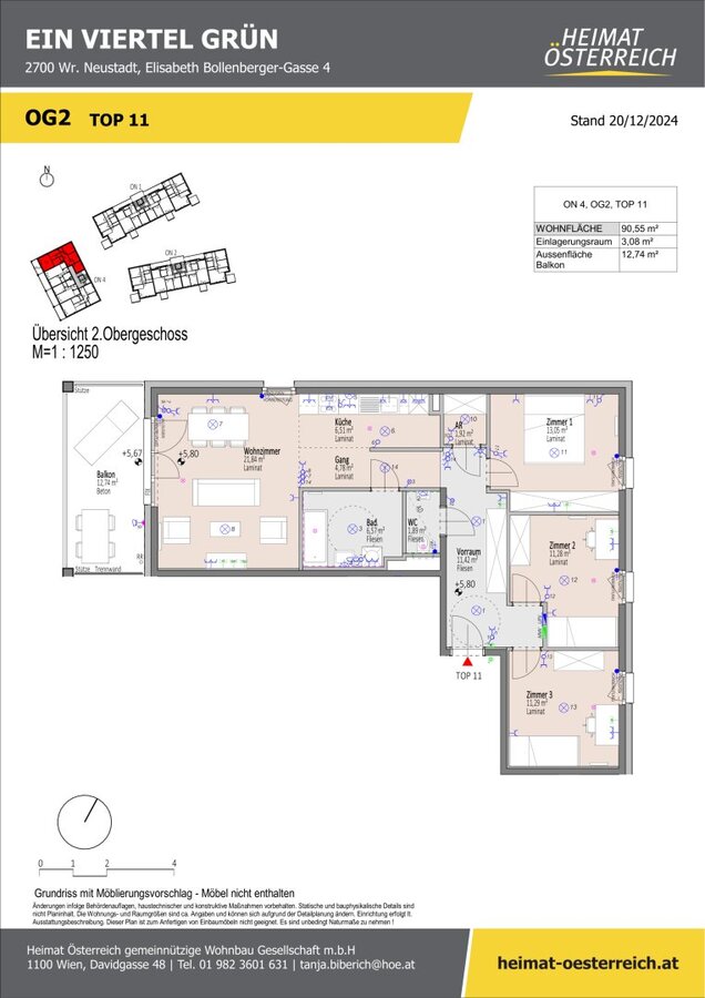- HWB Wert ca. 29,4 kwh/m²a, fGEE ca. 0,56