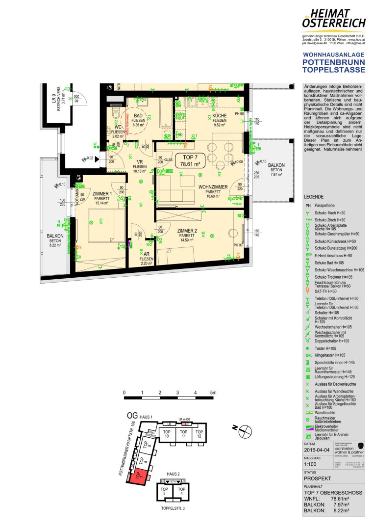 Energiekennzahlen: Laut Energieausweis vom 11.12.2015 beträgt der Heizwärmebedarf 22,31 kWh/m²a Klasse A und der Gesamtenergieeffizienz-Faktor 0,75 Klasse A.