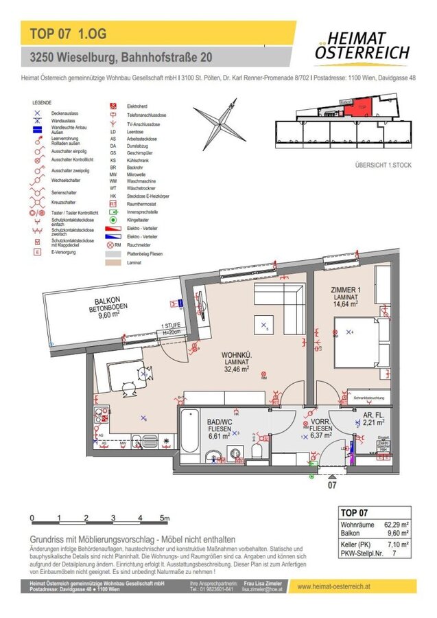 Jeder Wohnung ist ein Einlagerungsraum im Keller und ein Tiefgaragenabstellplatz (bereits in der Miete inkludiert) zugeteilt. Weiters befindet sich ein Trockenraum im Keller.