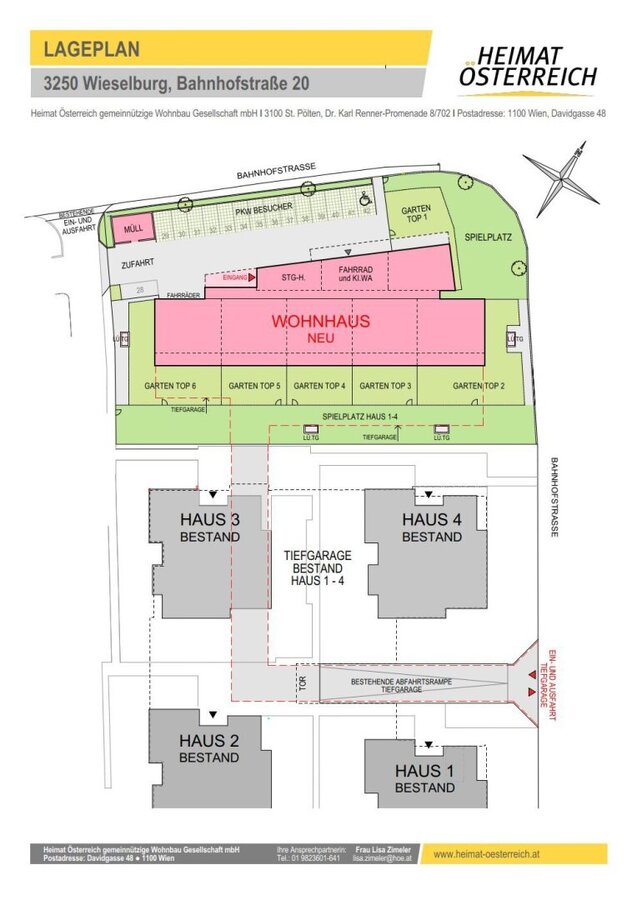 In der Stadtgemeinde Wieselburg, Bahnhofstraße 20, befinden sich unsere 27 geförderte Mietwohnungen mit Kaufoption in den Größen von ca. 58m² bis ca. 84m² (2-4 Zimmer).