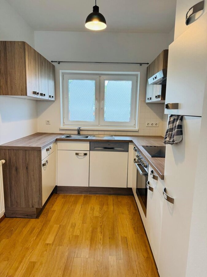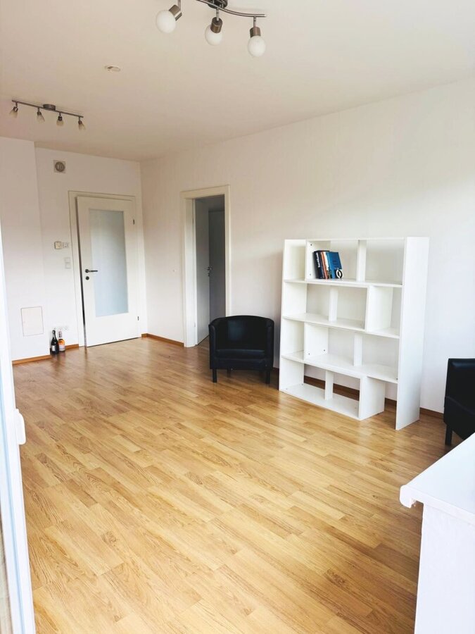 Die Wohnung gliedert sich in eine geräumige Wohnküche, ein Zimmer, ein Badezimmer mit WC, bodenebener Dusche, Handwaschbecken und Waschmaschinenanschluss, sowie einen Vorraum.
