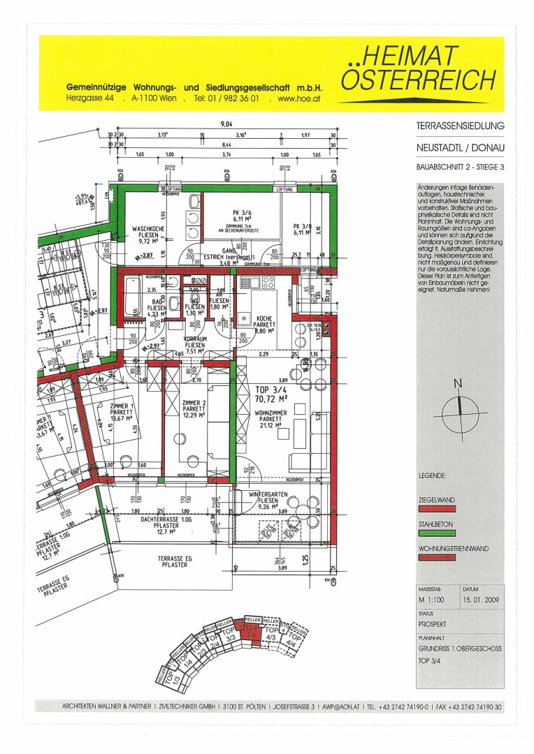 Willkommen in Neustadtl an der Donau in Niederösterreich! Die schöne Wohnung bietet ca. 71m² Wohnfläche, eine Dachterrasse mit ca. 13m² und einen traumhaften Wintergarten mit ca. 9m².