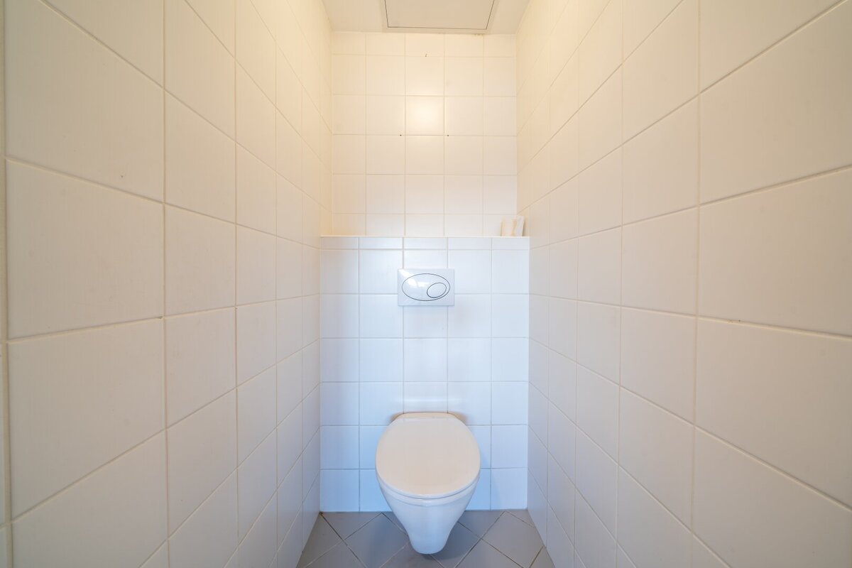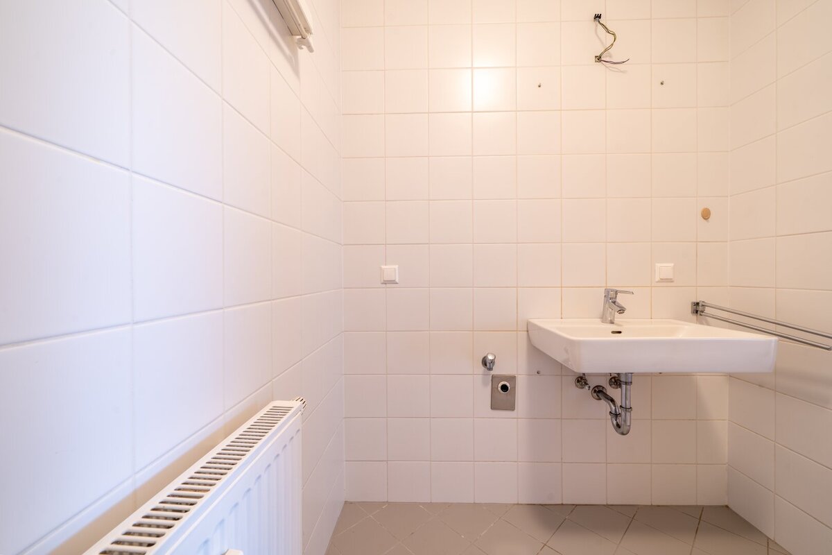 Das modern verflieste Badezimmer ist mit einer Badewanne ausgestattet. Des Weiteren befinden sich ein Handwaschbecken und ein Waschmaschinenanschluss im Badezimmer. Das WC ist separat angelegt.