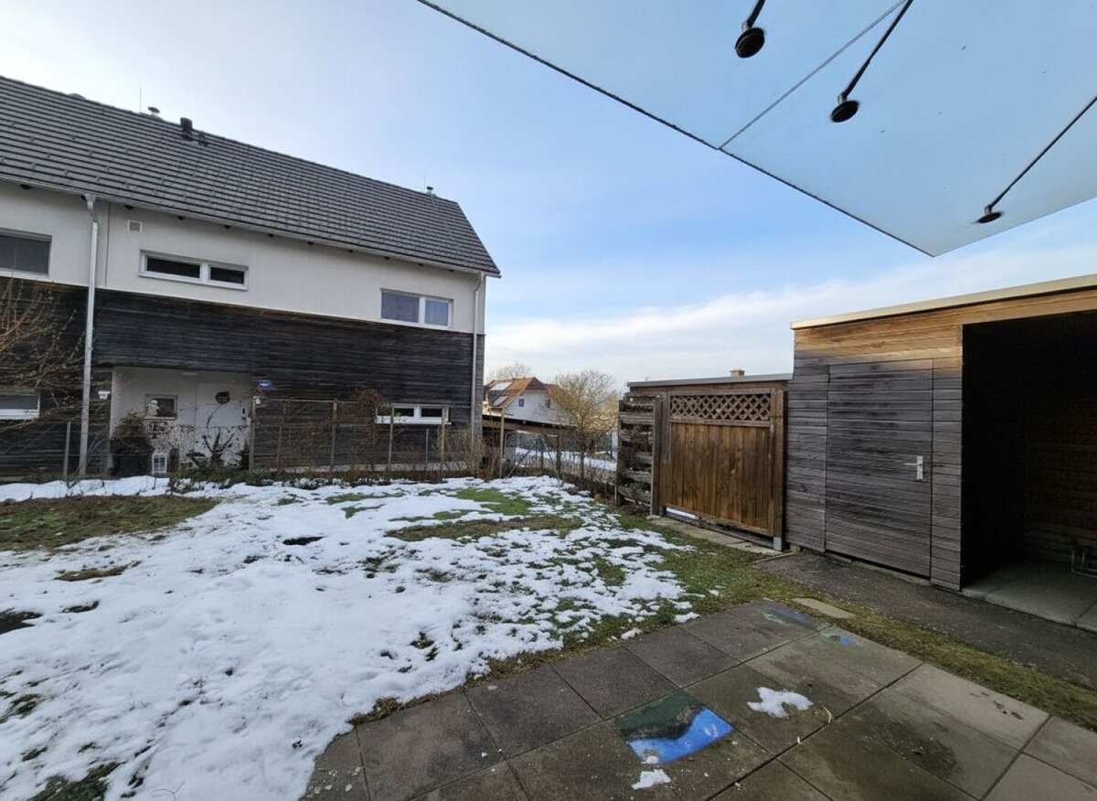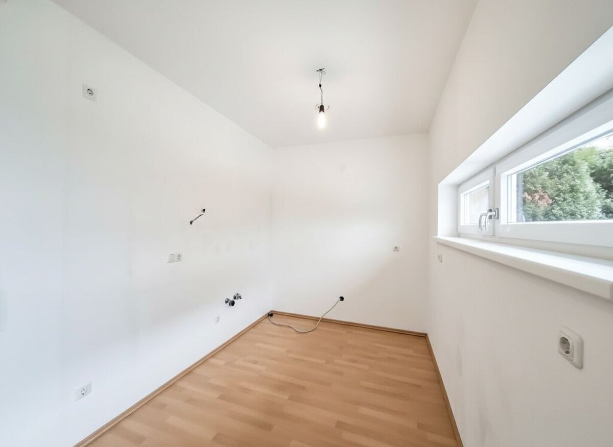 Im Erdgeschoss empfängt Sie eine geräumige Wohnküche. Von hier aus gelangen Sie direkt auf die ca. 10 m² große Terrasse und in den traumhaften, rund 91 m² großen Garten – ideal zum Entspannen, Spielen oder für gesellige Stunden im Freien. Ergänzt wird diese Ebene durch einen Vorraum, einen Abstellraum sowie ein separates WC.
