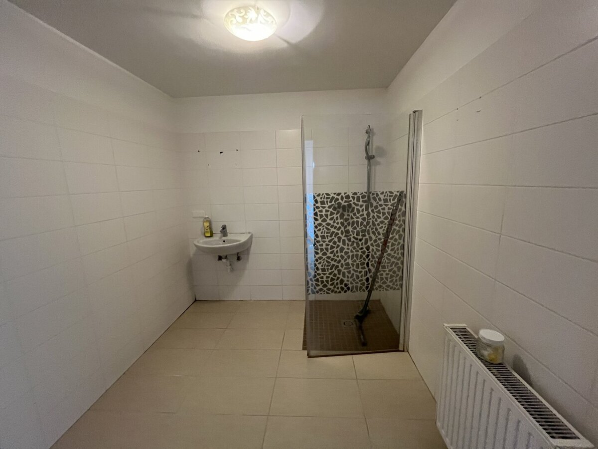 Das Badezimmer ist modern verfliest und mit einer bodenebenen Dusche, einem Handwaschbecken sowie einem Anschluss für die Waschmaschine ausgestattet. Das WC ist separat angelegt.