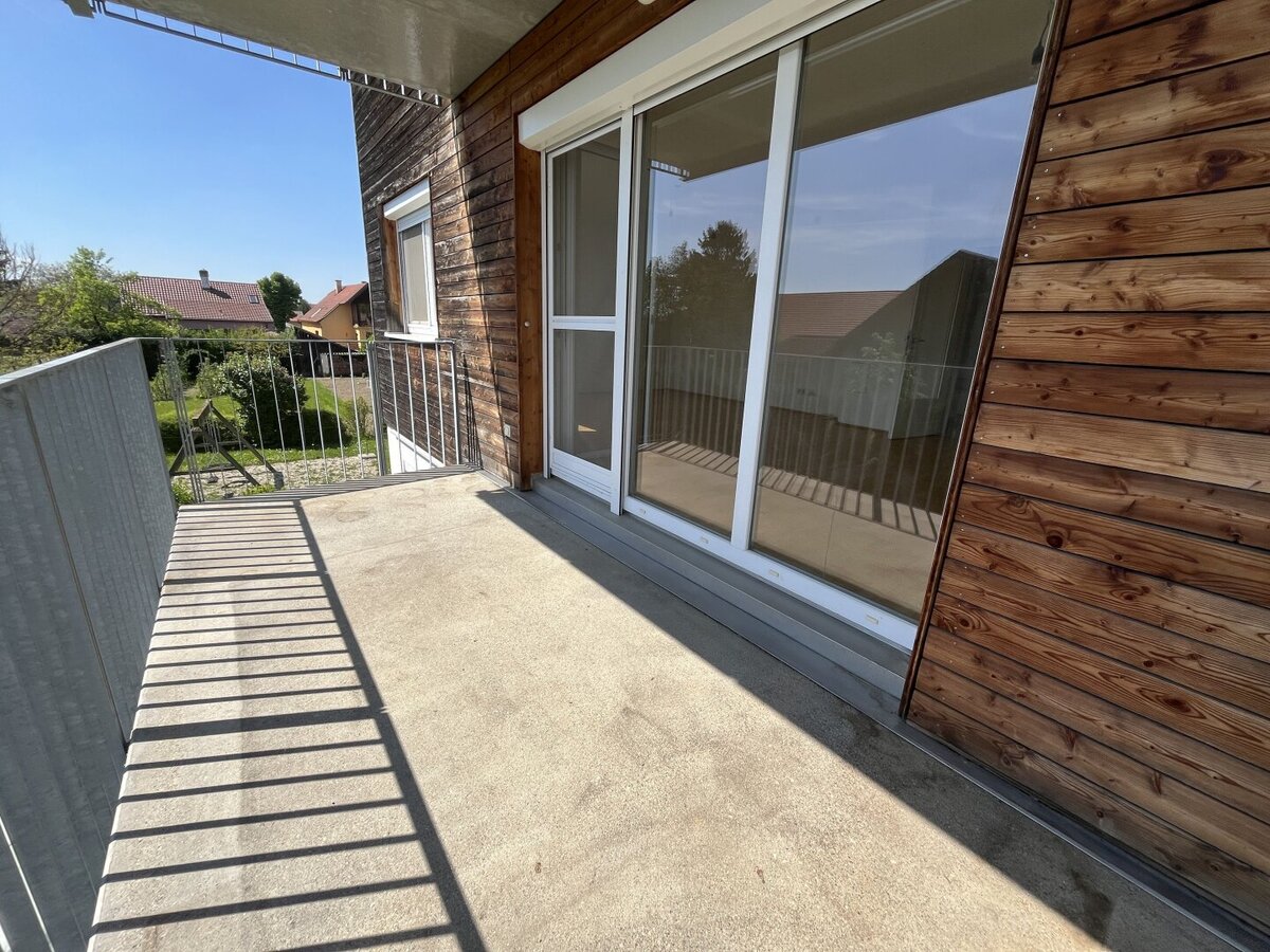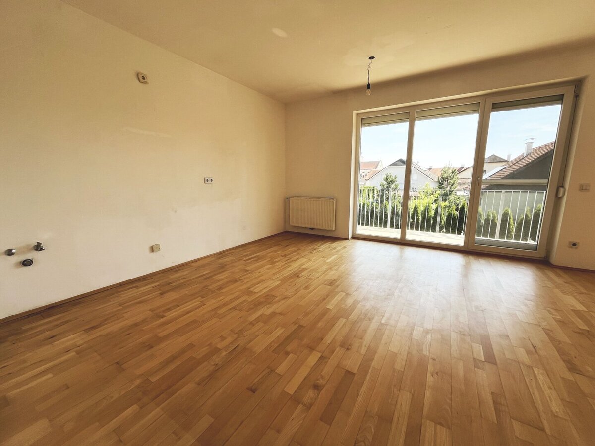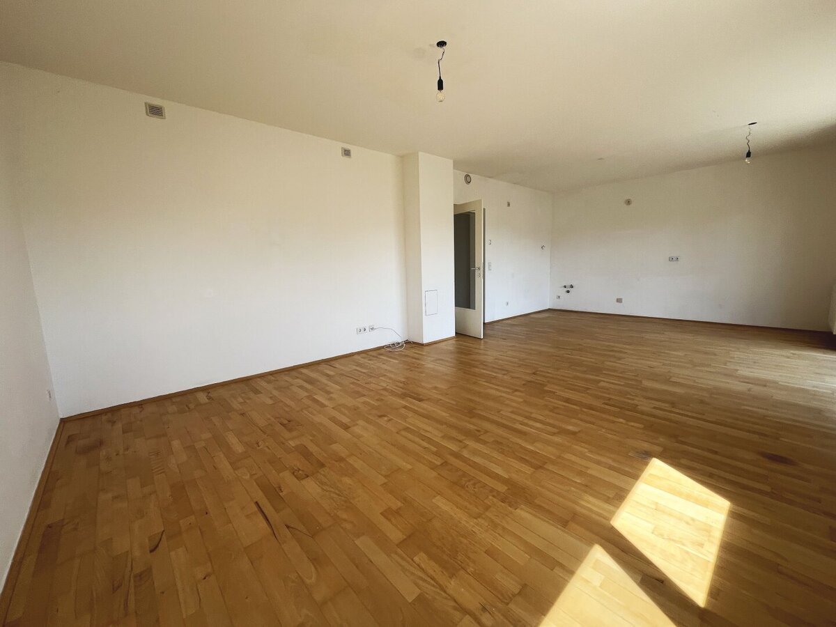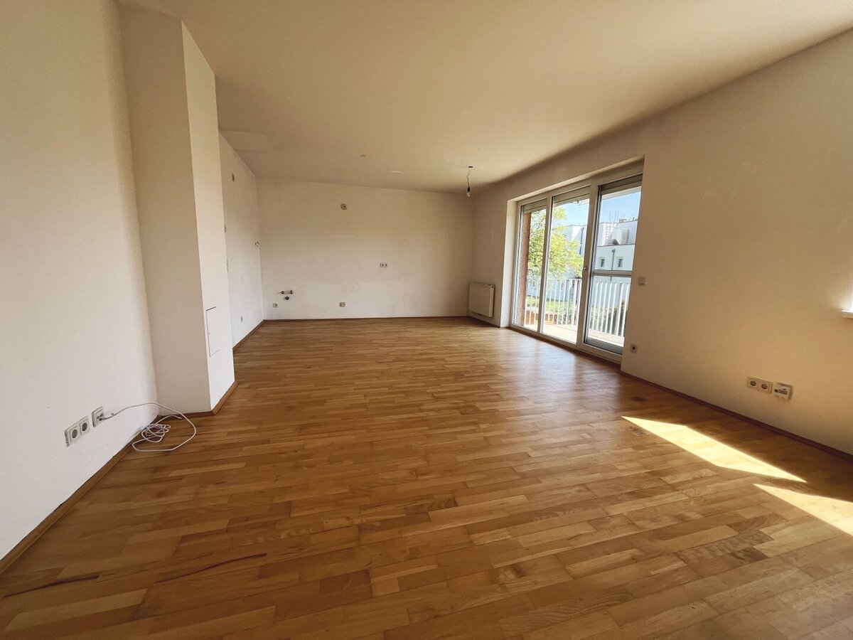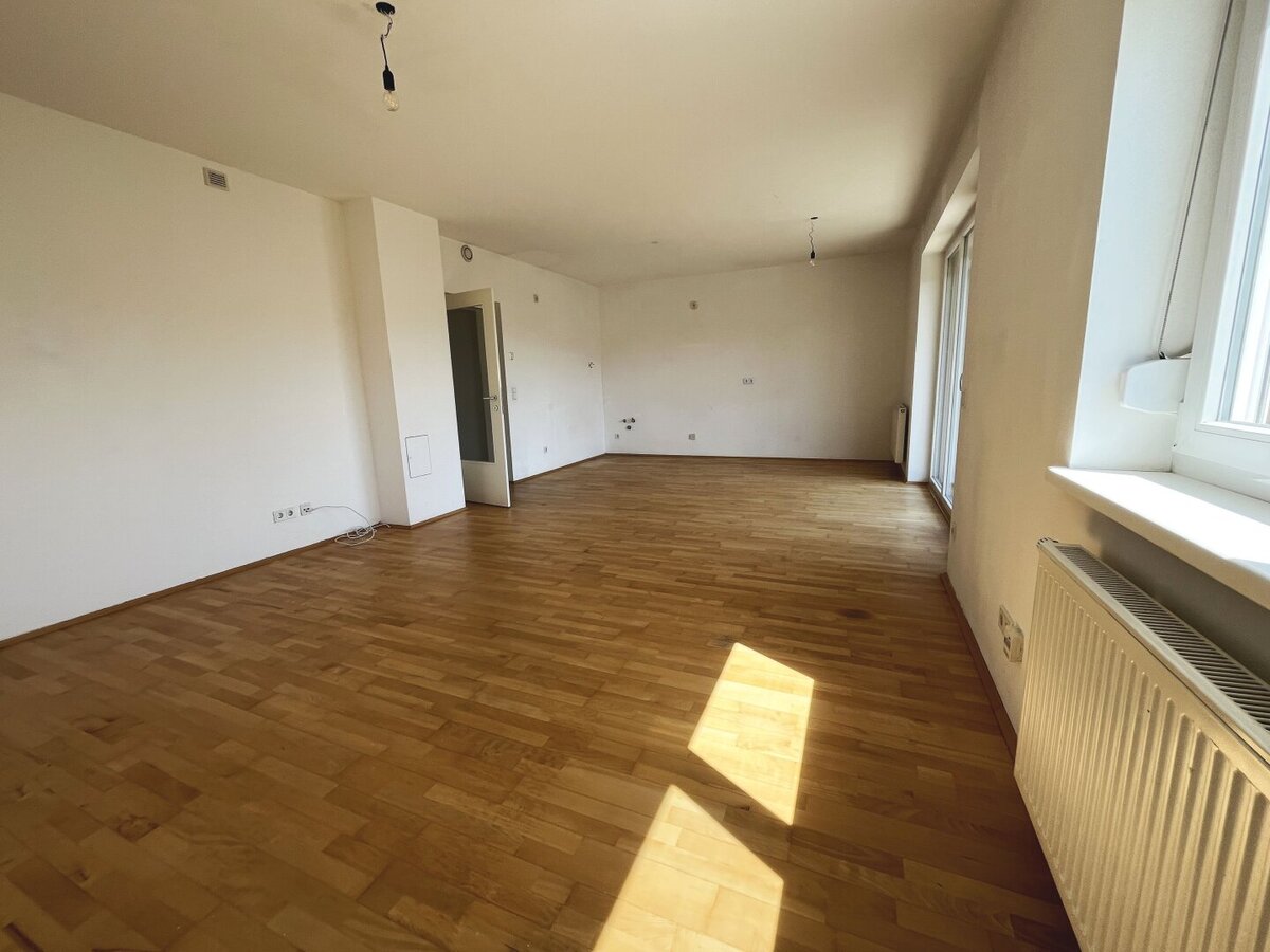 Die Wohnung besticht durch ihre helle und freundliche Atmosphäre. Der großzügige Wohn-Essbereich bietet ausreichend Platz – ideal für gemeinsame Stunden mit Familie oder Freunden. Vom Wohnraum aus gelangen Sie direkt auf den ca. 9,60 m² großen Balkon, der Ihnen einen herrlichen Ausblick ins Grüne bietet und zu entspannten Stunden im Freien einlädt.