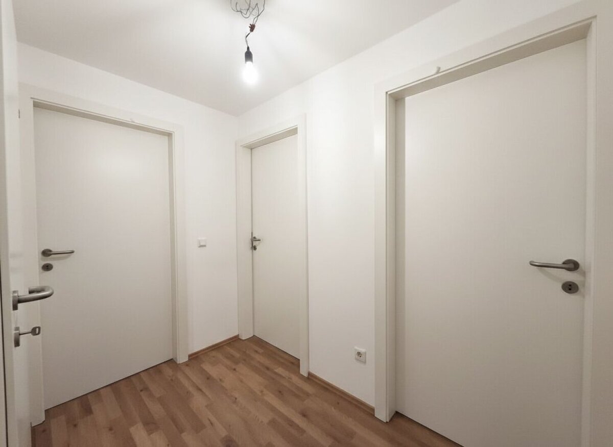 Über die Treppe gelangt man ins Obergeschoss, das mit drei weiteren Zimmern überzeugt. Zwei dieser Zimmer haben direkten Zugang zum gemütlichen Balkon, der sich perfekt für eine kleine Auszeit im Freien eignet. Zusätzlich gibt es einen Abstellraum und ein Badezimmer mit Badewanne und WC.