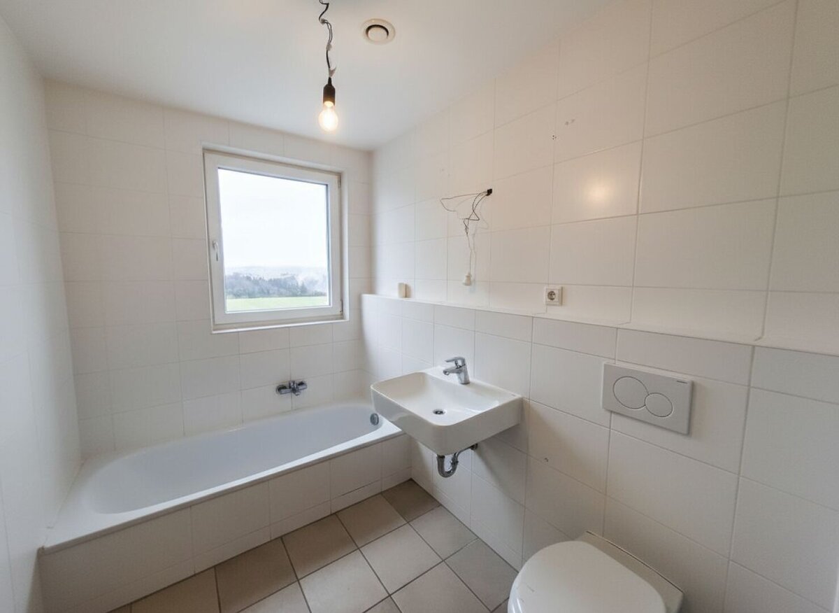 Die Wohnung ist mit pflegeleichtem Laminatboden in den Wohnräumen und Fliesen in den Nassbereichen ausgestattet.